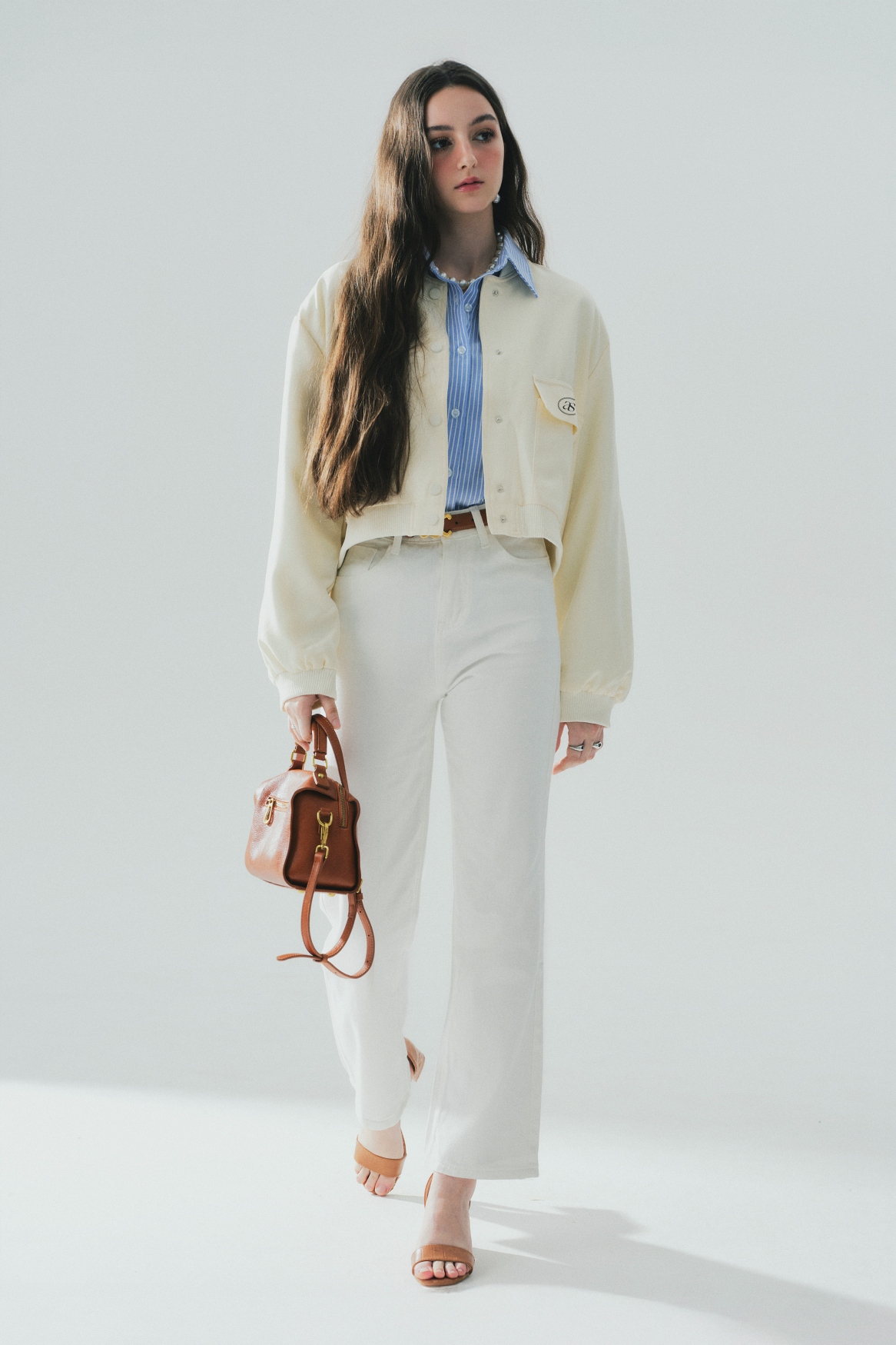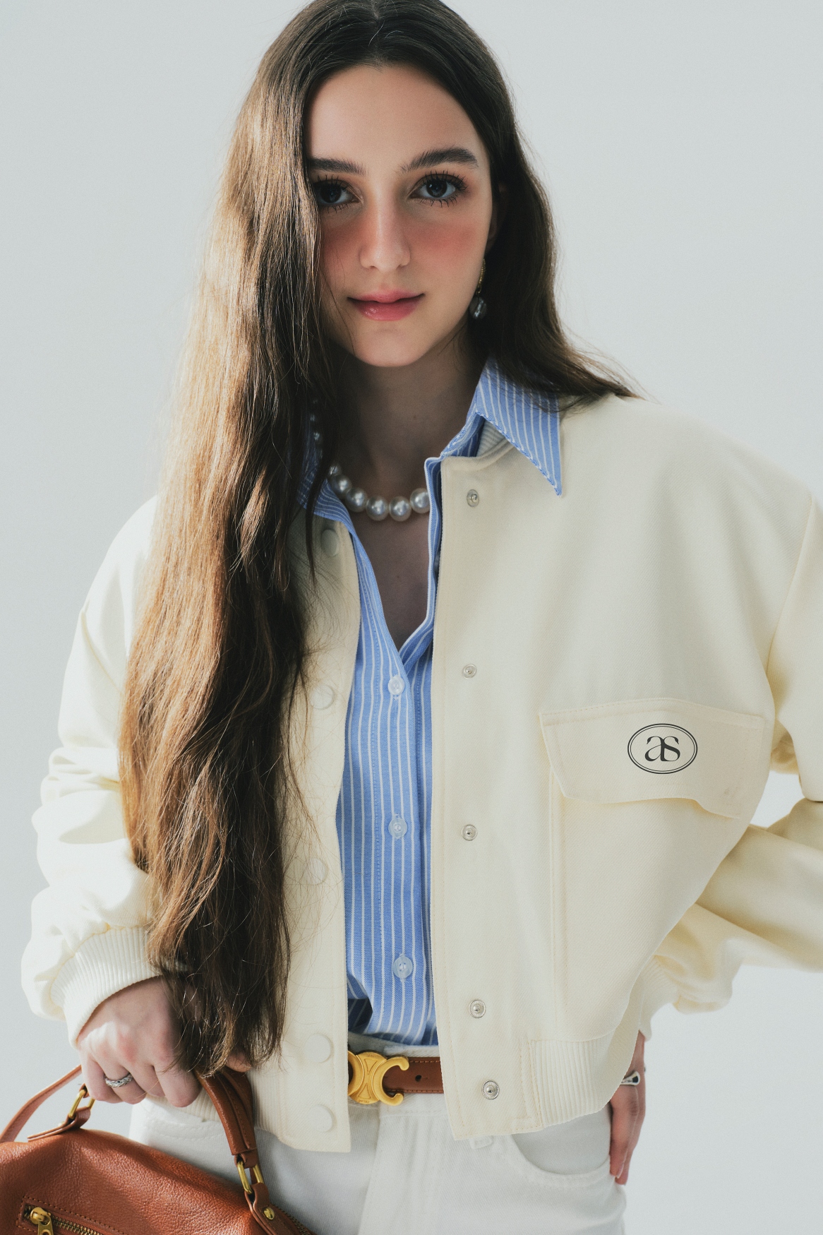Áo khoác croptop Bomber độn vai, thêu logo Lana, cúc bấm. Áo được may 2 lớp dày dặn, đứng form, dáng croptop trẻ trung.