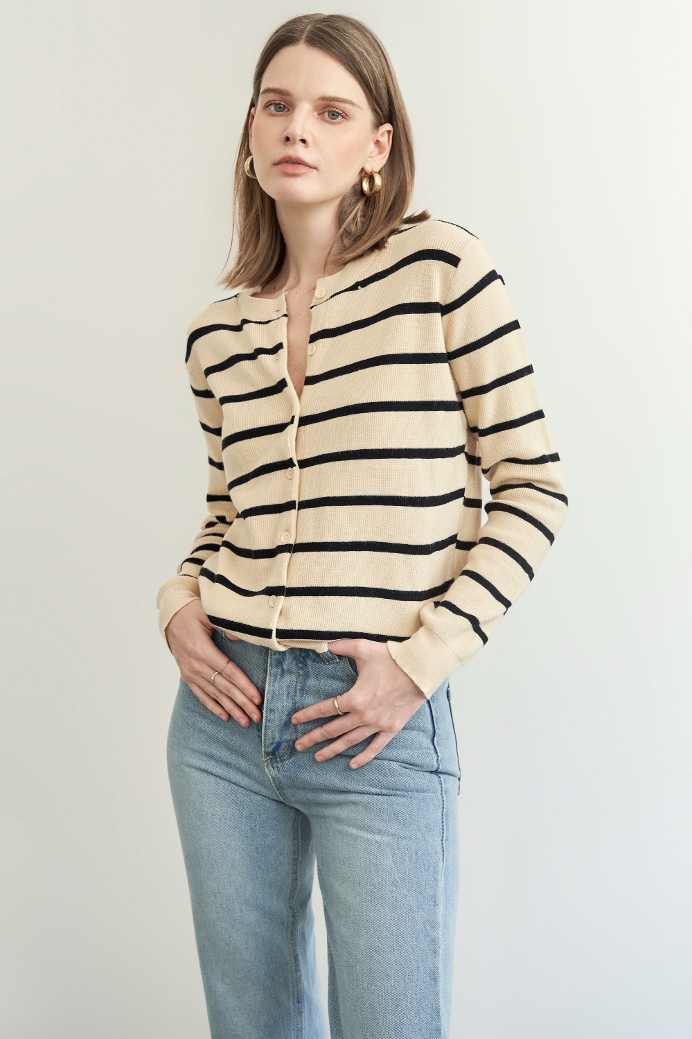 Áo cardigan len dày dặn. chất len co giãn cao nên khi may phần chỉ đường line gài nút, phần ráp vai ,tay sẽ có độ cong uốn lượn, đây ko phải là hàng lỗi .