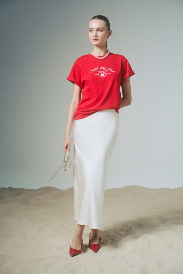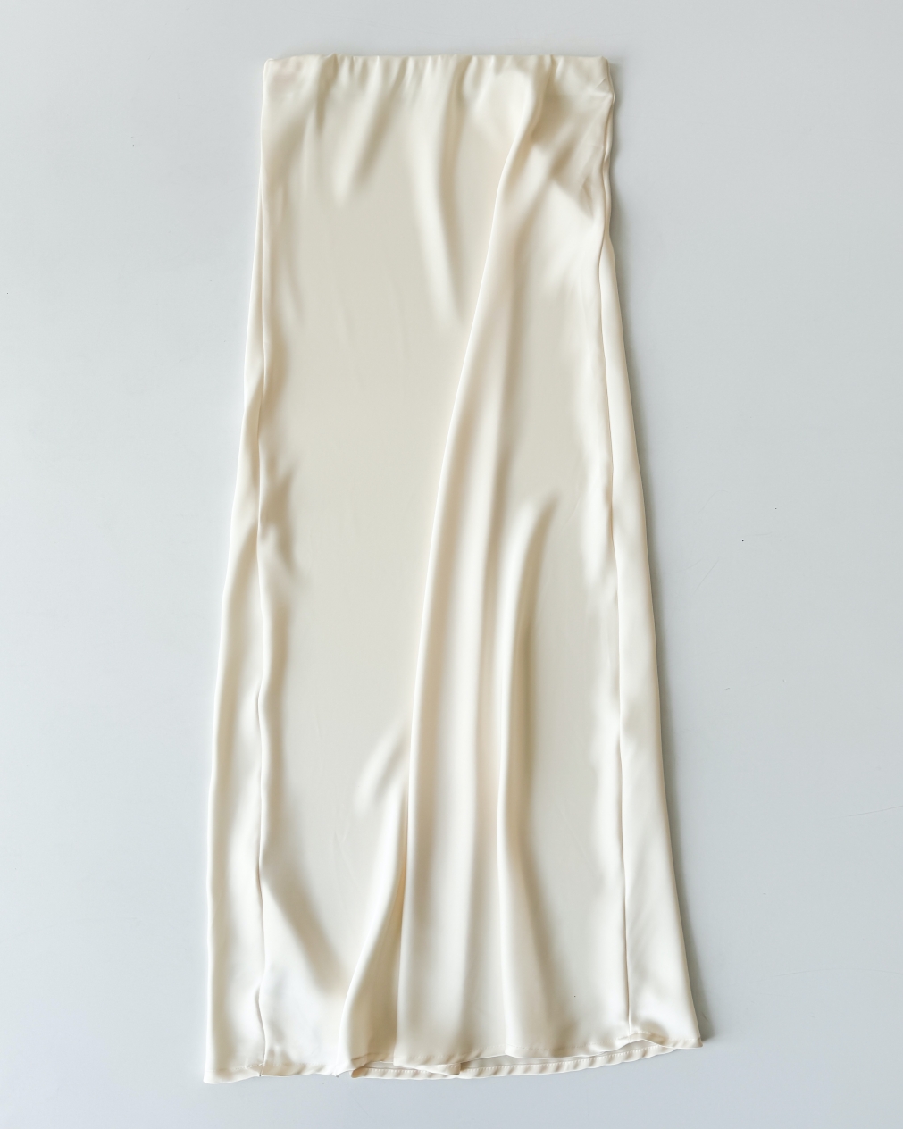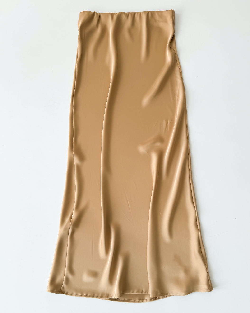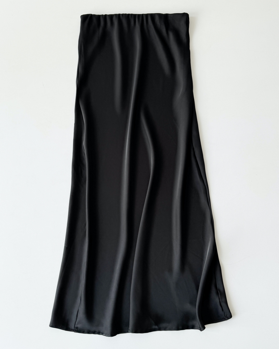 Chân váy lụa maxi lưng chun ẩn tinh tế, co giãn thoải mái, dáng siêu dài tôn dáng.