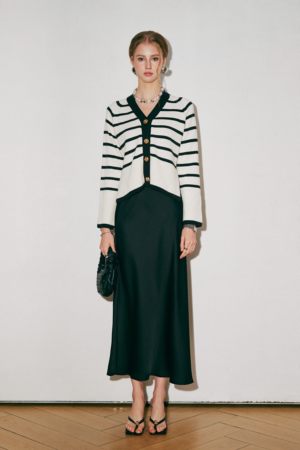 Chân váy maxi lụa dáng trễ eo, tà đuôi cá nhẹ. Lưng chun co giãn Freesize,eo tối đa 75