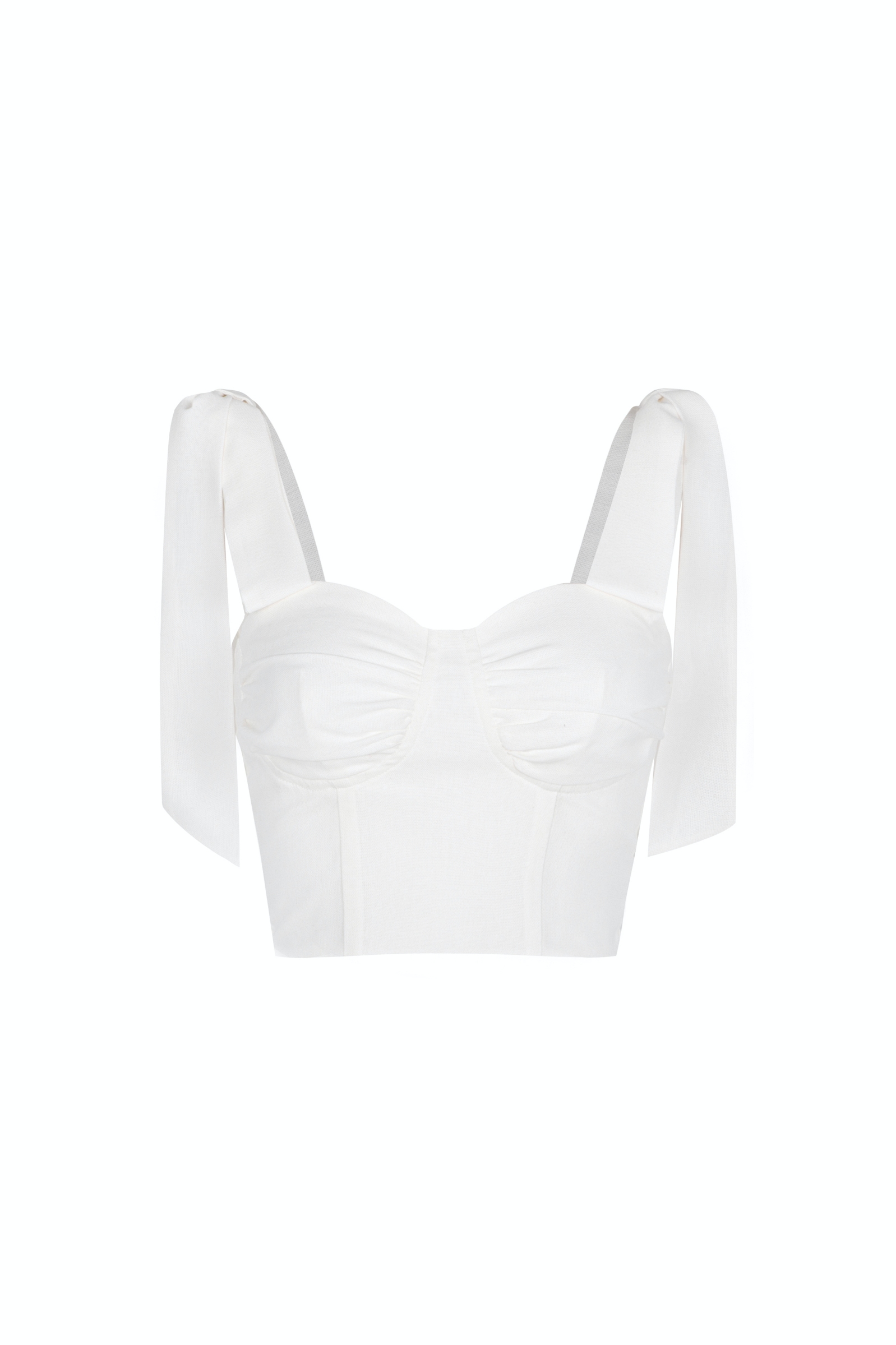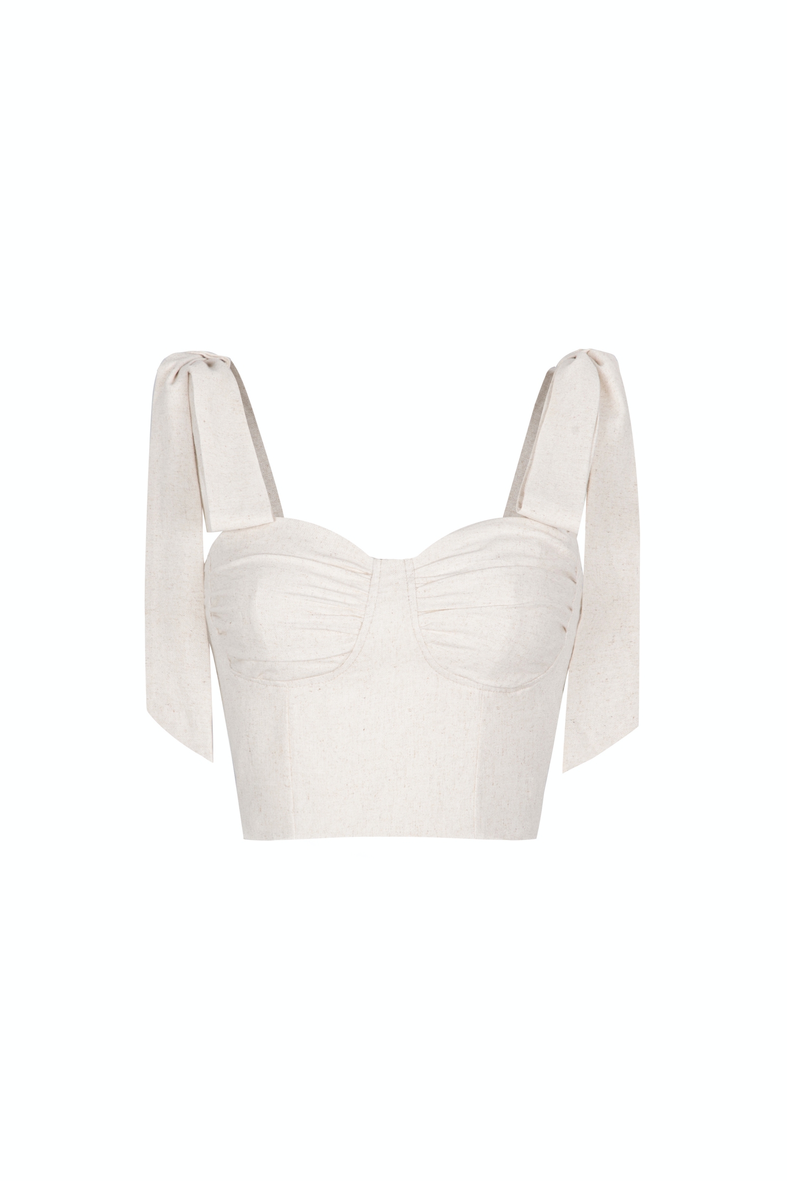 Áo croptop linen thiết kế kiểu nhún ngực cúp nhẹ, 2 dây dễ điều chỉnh, kiểu thắt nơ.